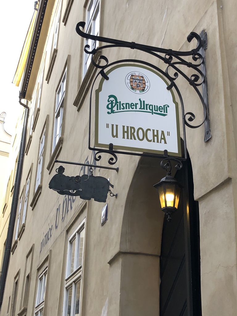 U Hrocha (Malá Strana). The wrought-iron hippo dangling from the façade marks the location of this pub halfway up to the castle. Inside, the hippos multiply, adding a dash of levity to this simply appointed pub with exposed brick and vaulted ceilings. Every seat is full on this Sunday afternoon. It’s a bit intimidating at first. The burly barkeeps look like they could double as bouncers. Perhaps they do in this boisterous pub filled with seasoned drinkers. But they’re friendly enough in their gruff kind of way, and make sure you always have a fresh mug of Pilsner Urquell in front of you.