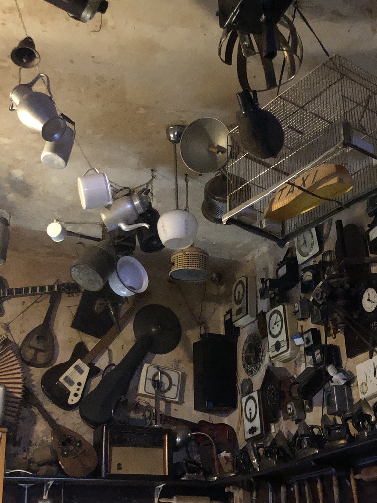 U Sadu (Žižkov). U Sadu is a matters of taste. Some folks really like it. Me? I find the bric-a-brac over the top. And that’s coming from someone who loves the bric-a-brac at places like La Fleur en Papier Doré in Brussels. There, the encrustations feel organic, an outgrowth of the place itself. At U Sadu, it’s as if someone took the contents of their storage container and stuck it all on the wall or hung it from the ceiling. That’s not to say I’d steer anyone away from U Sadu. After all, it has plenty to recommend it, including fourteen beers on tap, a fridge filled with decent Belgian beers, tasty food, and a cheeky sense of humour.
