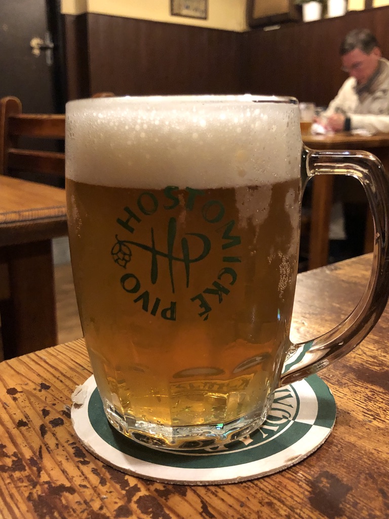 Hostomická Nalévárna (Nové Město). Tucked away on a side street just off the busy Revoluční boulevard, this hole in the wall is everything you’d imagine a snug Czech pub to be. The back room with its dark wood paneling and yellow walls consists of four scuffed tables that have seen their share of drinkers. We occupied one, while a bespectacled gent busied himself at another reading the paper.